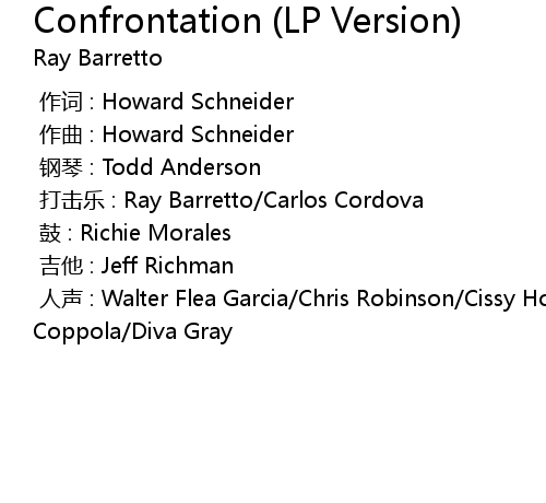 | [00:00.000] | 打击乐 : Ray Barretto/Carlos Cordova |