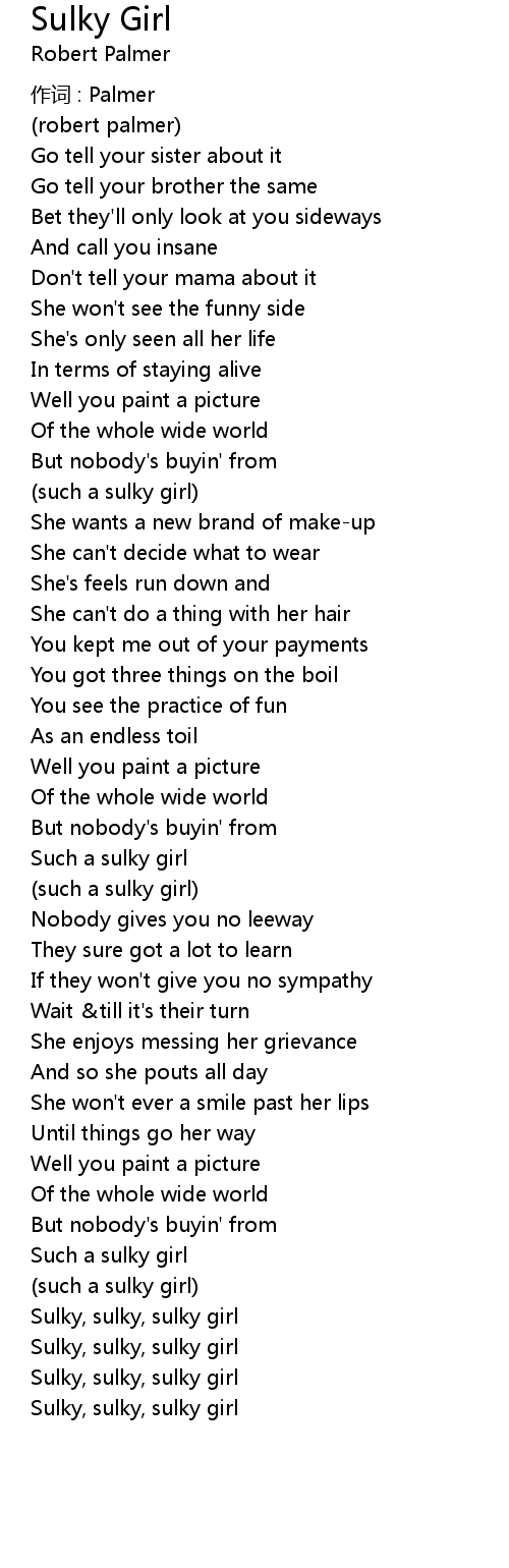 | Sulky, sulky, sulky girl | |