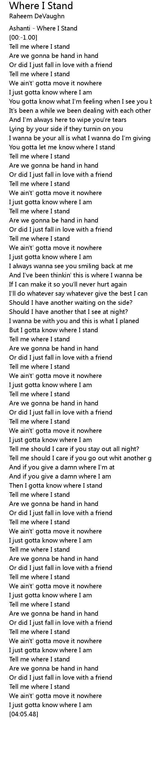 Then I gotta know where I stand |