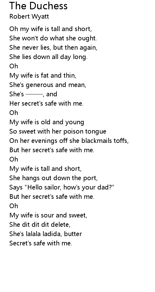 | My wife is sour and sweet, | |