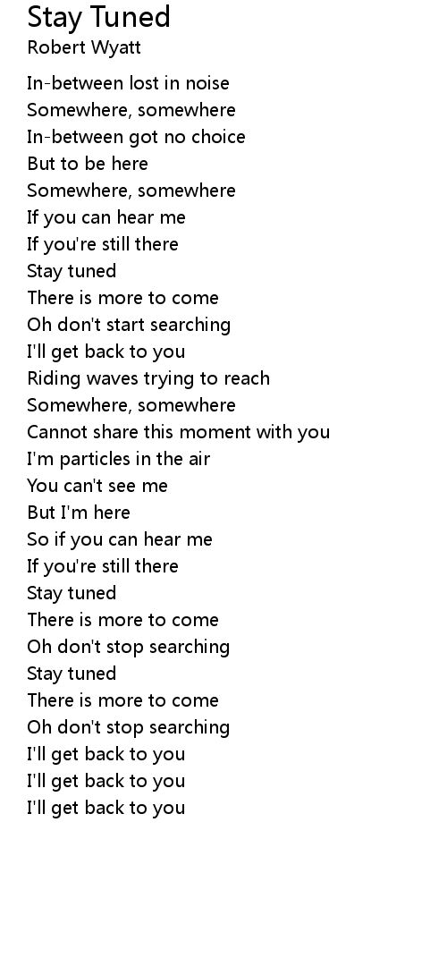 | Stay tuned | |