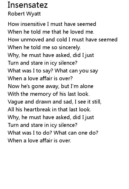 How insensitive I must have seemed |