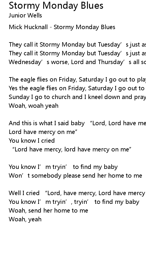 | They call it Stormy Monday but Tuesday' s just as bad | |