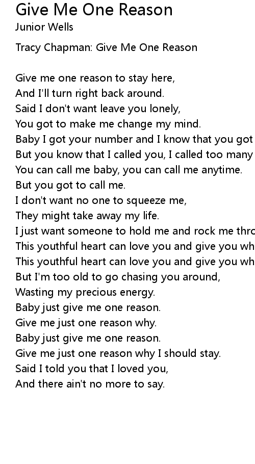 Baby just give me one reason. |