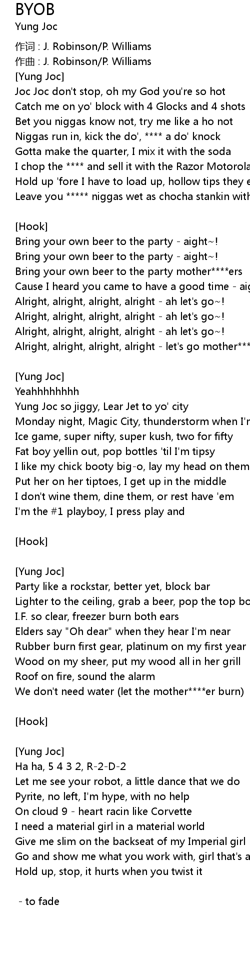 | Yung Joc so jiggy, Lear Jet to yo' city | |