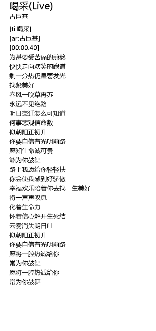 | [03:20.15] | cháng wèi nǐ gǔ wǔ |