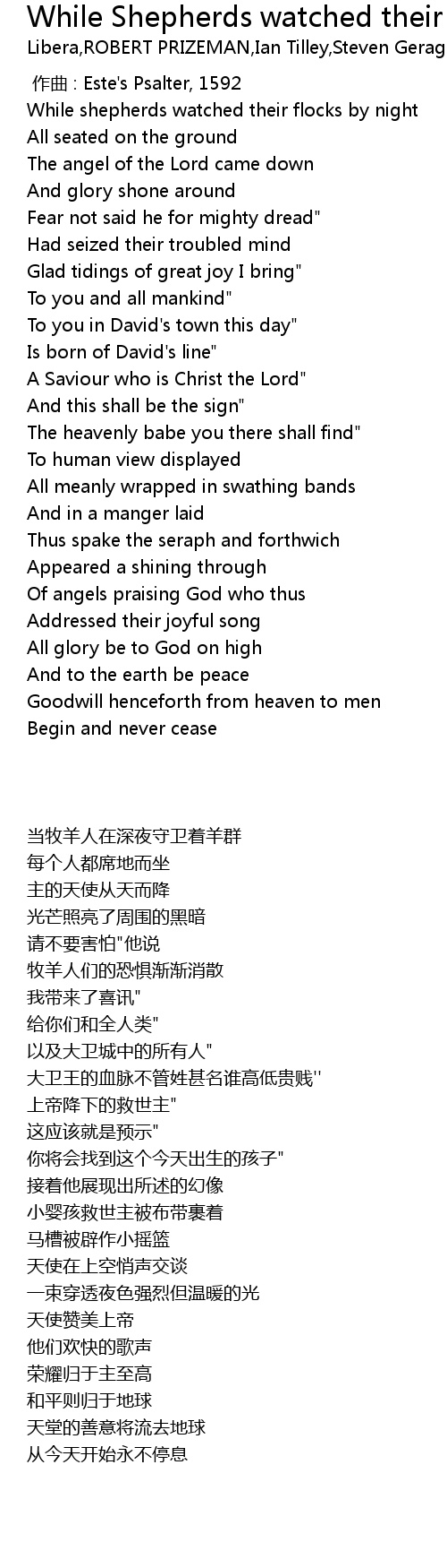 | [00:00.00] | While shepherds watched their flocks by night |