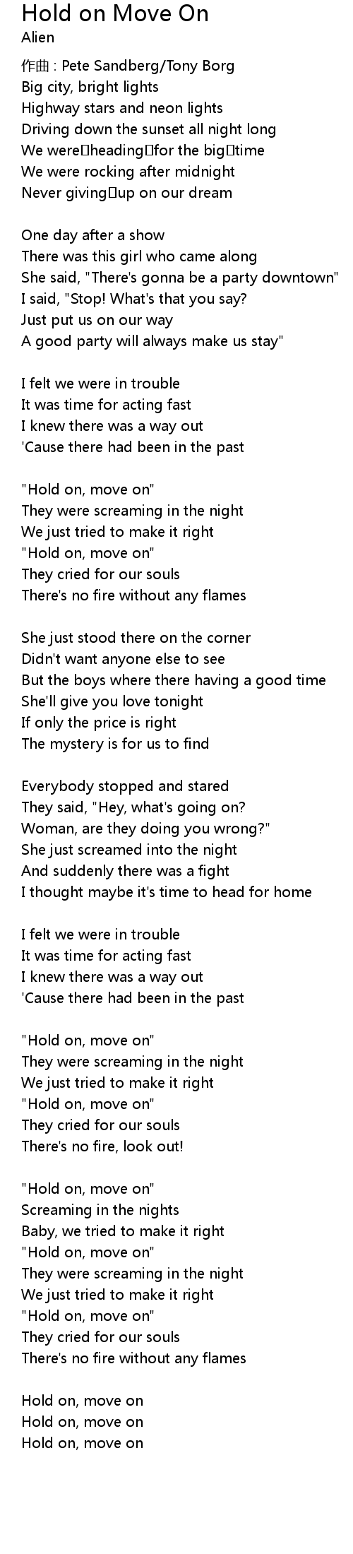 | Hold on, move on | |