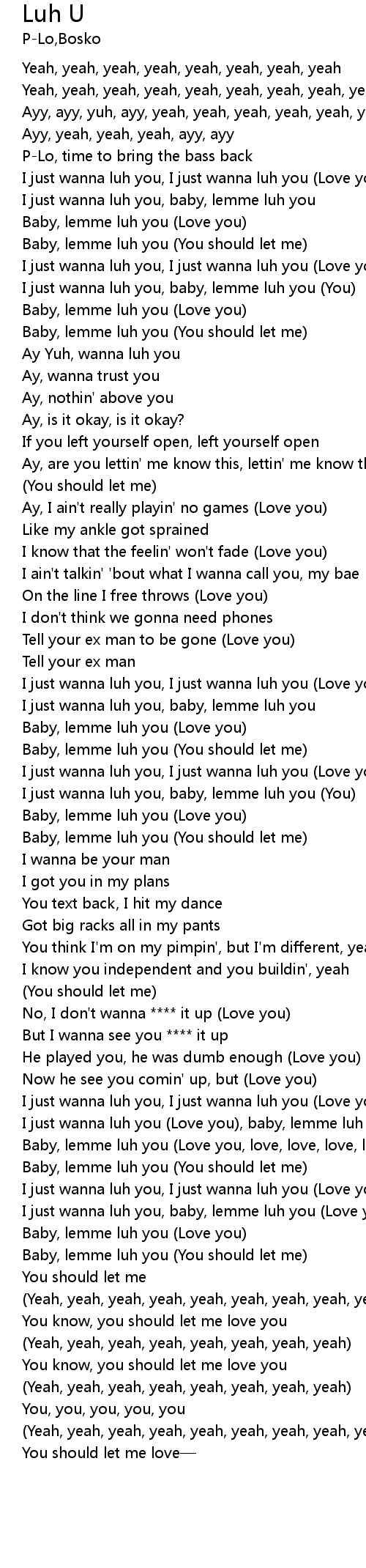| [00:34.87] | I just wanna luh you, baby, lemme luh you You |