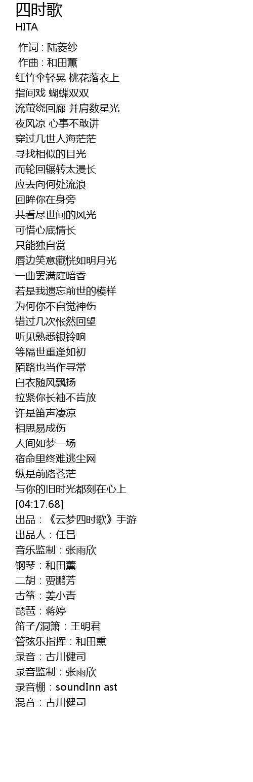 | [04:21.852] | 出品:《云梦四时歌》手游 |