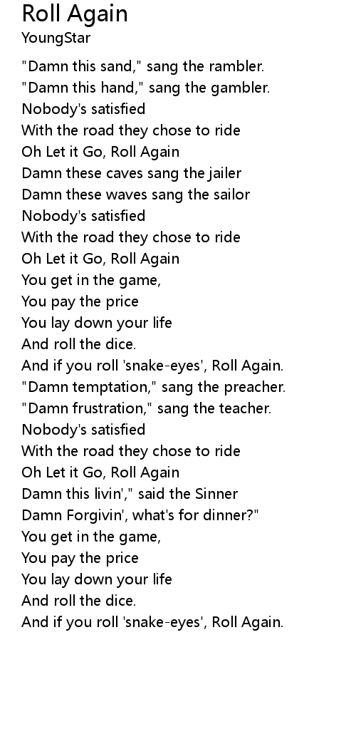 Oh Let it Go, Roll Again |