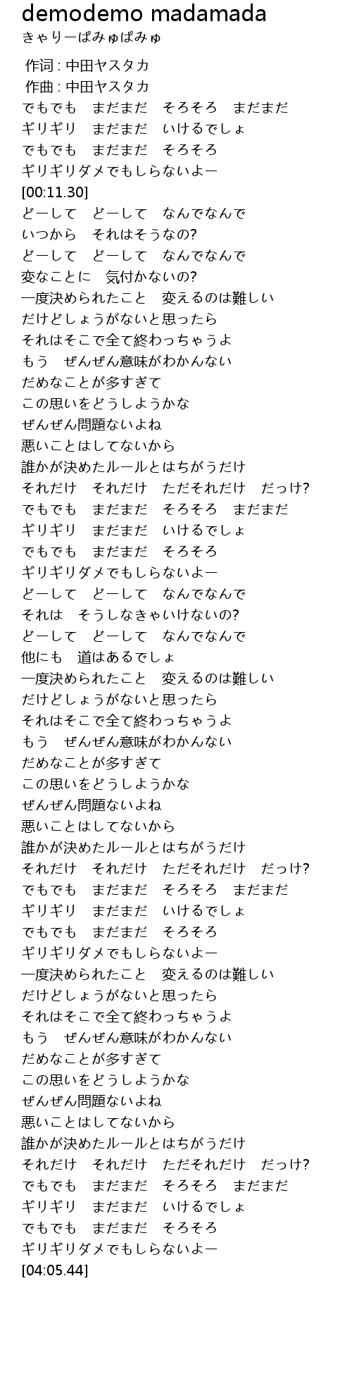 作词 : 中田ヤスタカ |