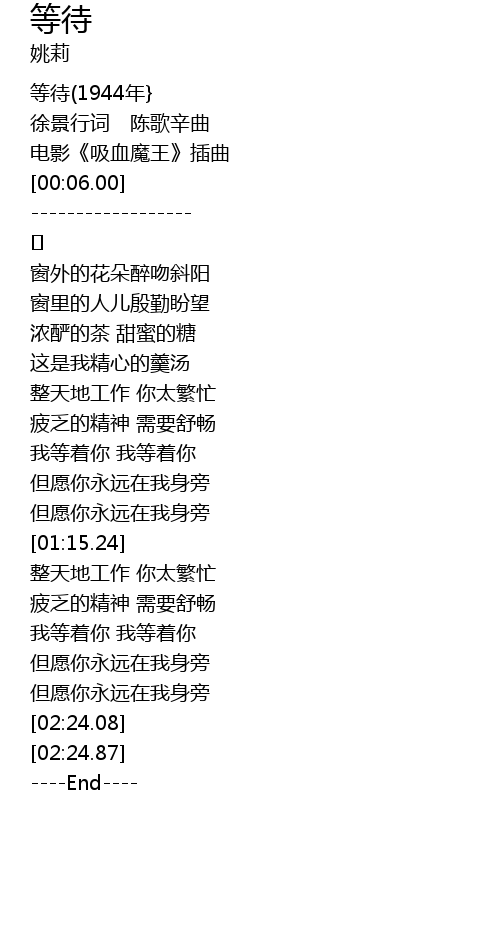 | [00:01.00] | 等待(1944年} |