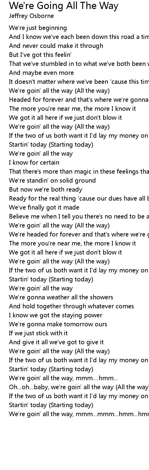 We're goin' all the way, mmm...mmm...hmm...hmm...ooh...hoo... |