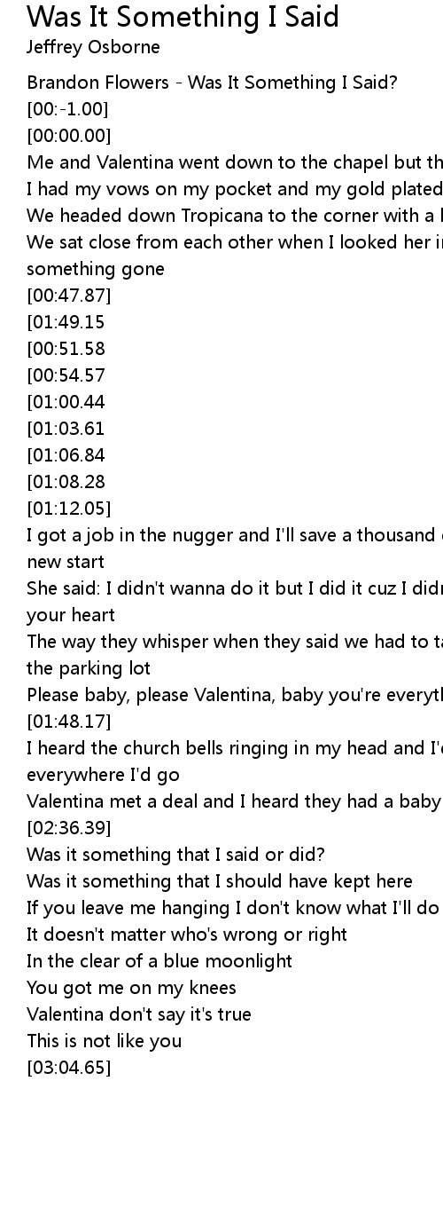 Was it something that I said or did? |