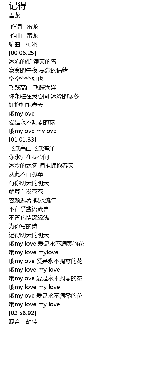| [02:59.92] | 混音:胡佳 |