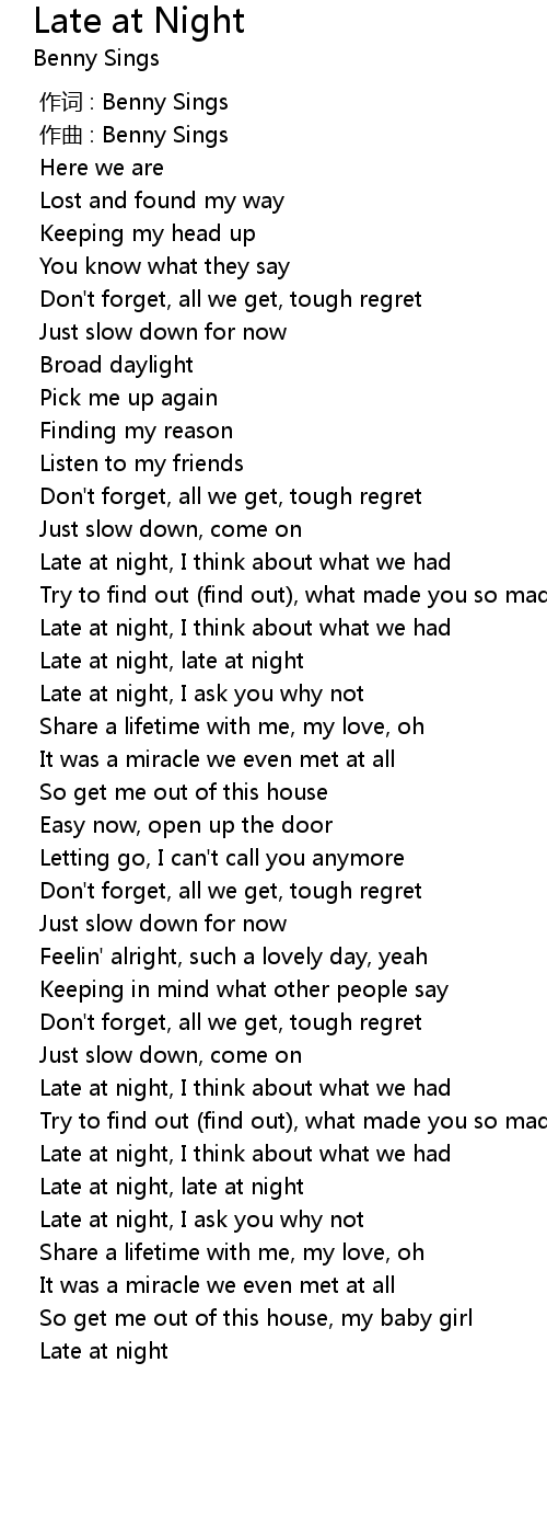 | [00:01.000] | zuò qǔ : Benny Sings |