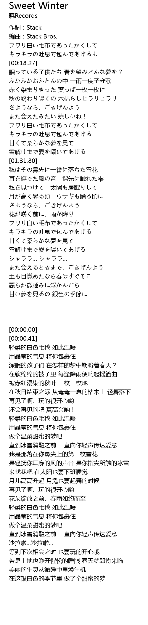 | [03:20.95] | 甘い夢を見るの 銀色の季節に |