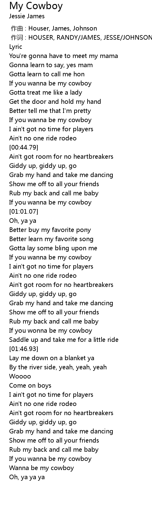 | [02:29.17] | Wanna be my cowboy |