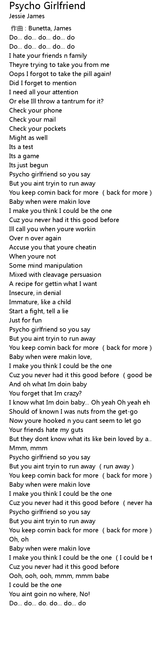 | [00:43.43] | Psycho girlfriend so you say |