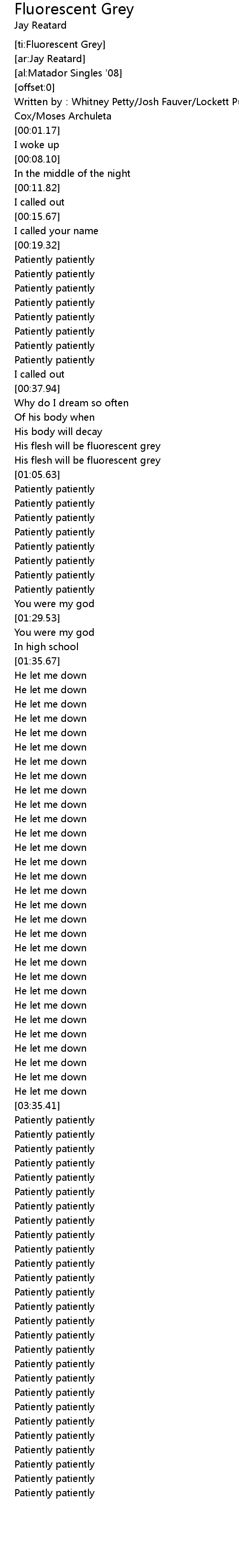 | [00:00.86] | Written by:Whitney Petty/Josh Fauver/Lockett Pundt/Bradford Cox/Moses Archuleta |