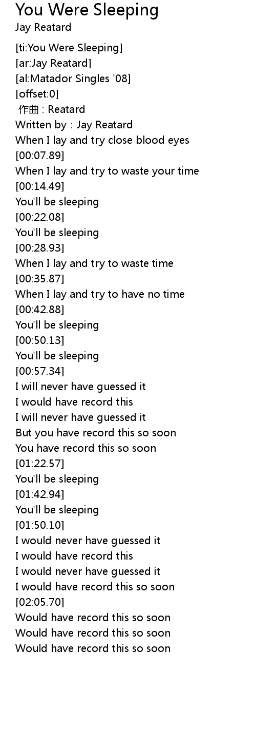 | [00:00.80] | Written by:Jay Reatard |