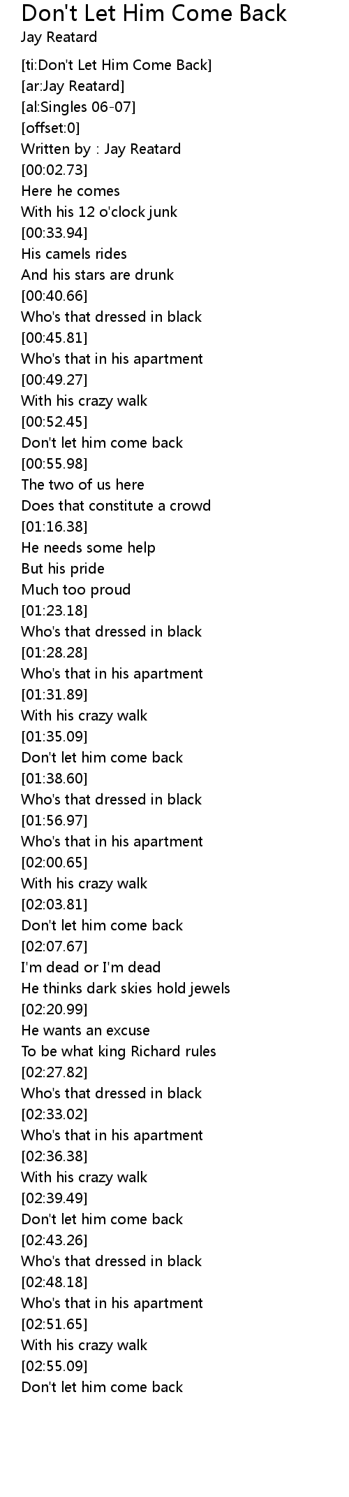 | [ti:Don't Let Him Come Back] | |