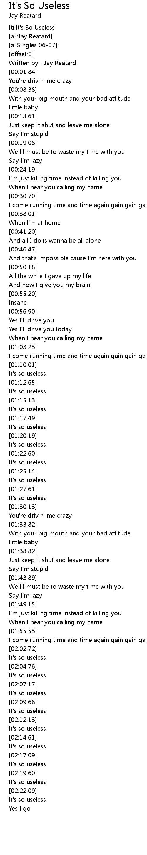 | [02:18.74] | It' s so useless |