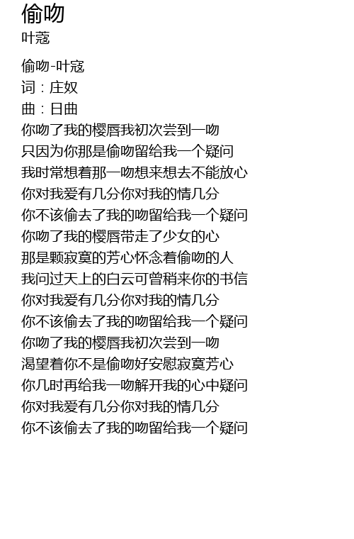 | [00:02.611] | 偷吻-叶寇 |