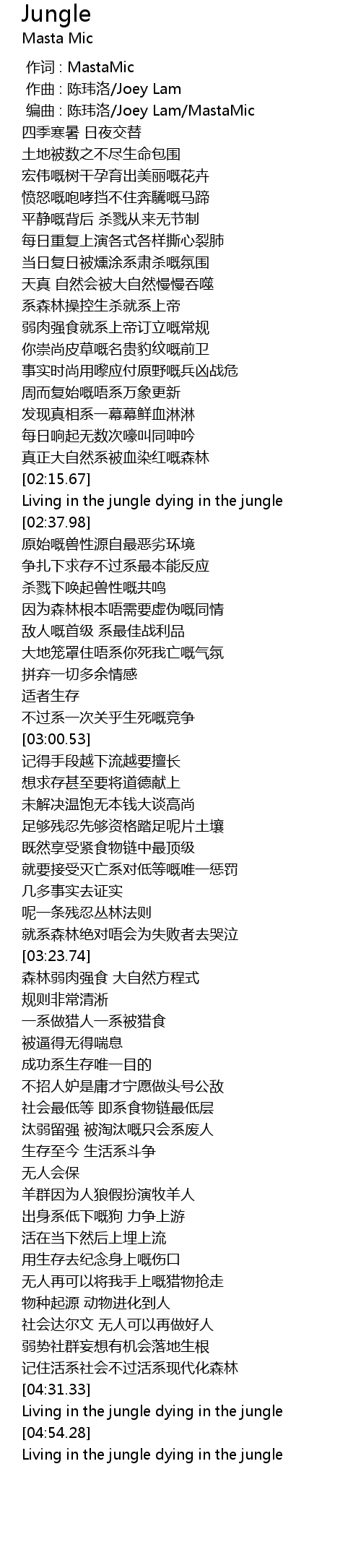 | [04:37.39] | Living in the jungle dying in the jungle |