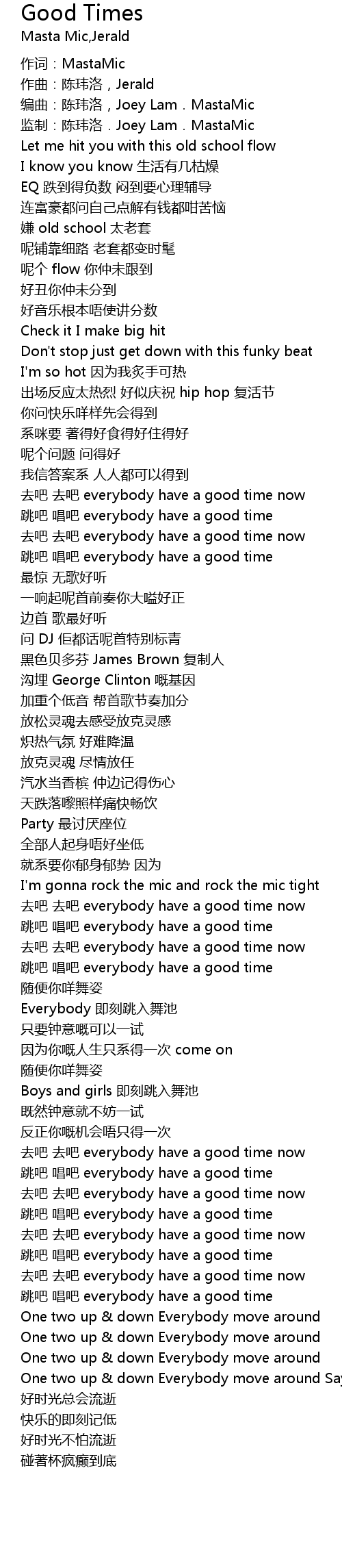 | [00:57.744] | qù ba qù ba everybody have a good time now |
