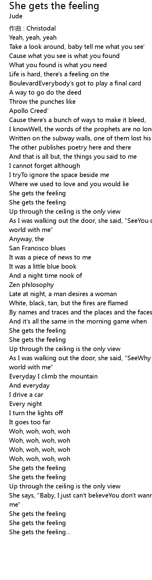 | As I was walking out the door, she said, "SeeWhy don't you wanna come around the world with me" | |