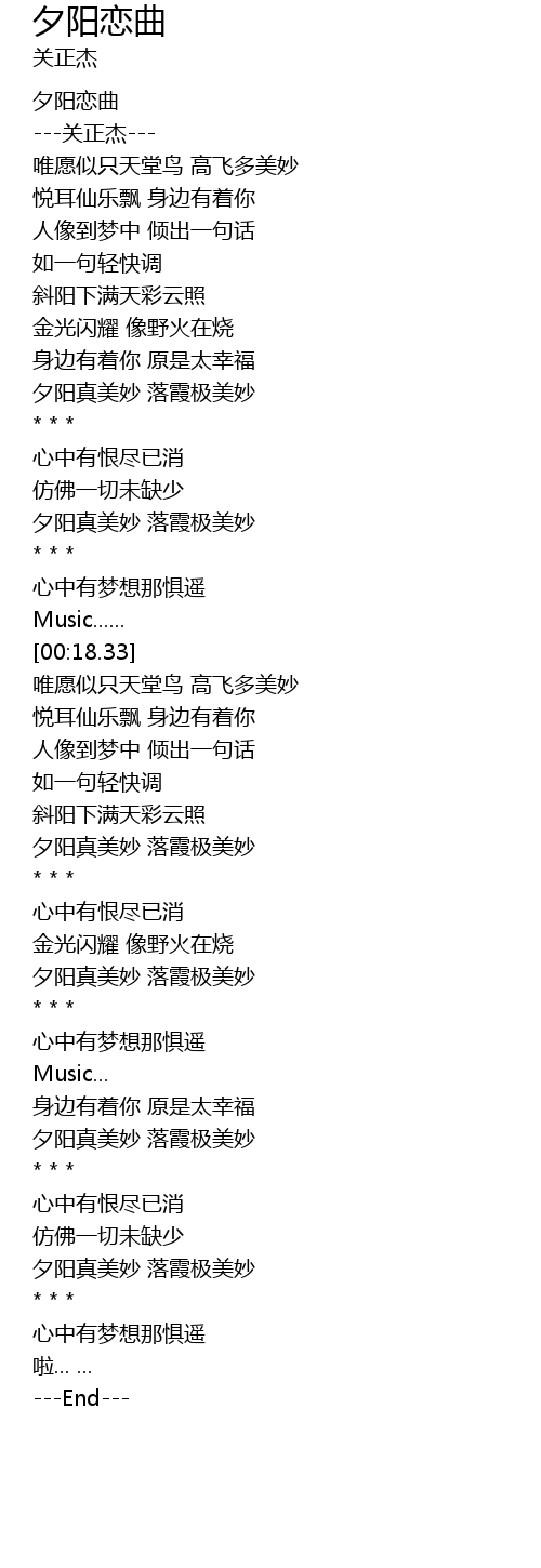 | [02:31.93] | 夕阳真美妙 落霞极美妙 |