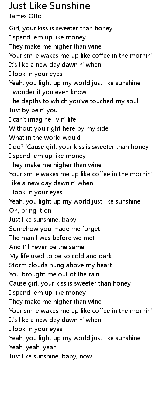 Just like sunshine, baby, now |
