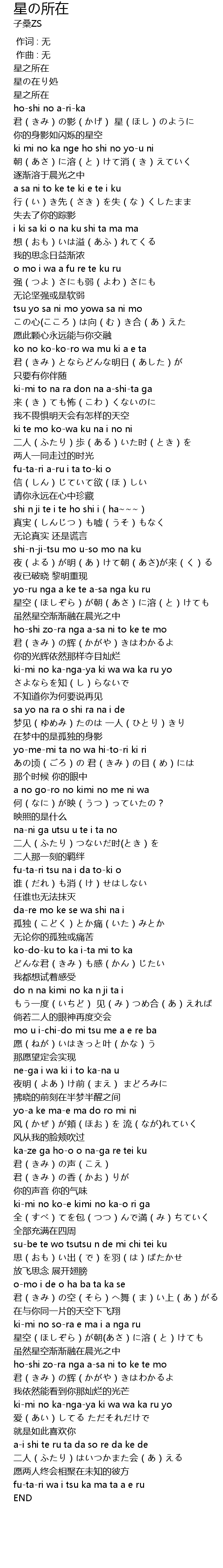 | [01:17.92] | shi n ji te i te ho shi i(ha~~~) |