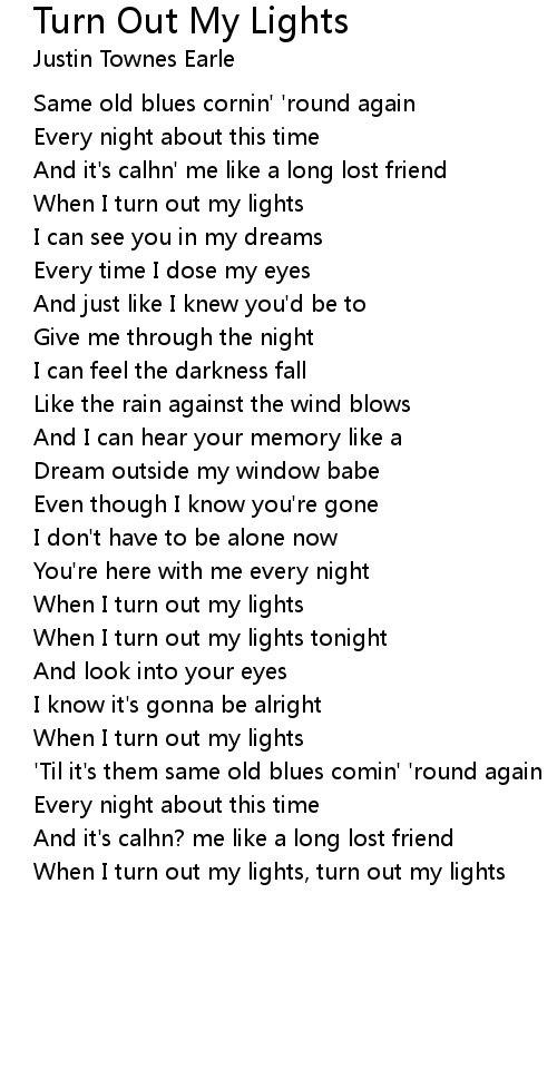 When I turn out my lights, turn out my lights |