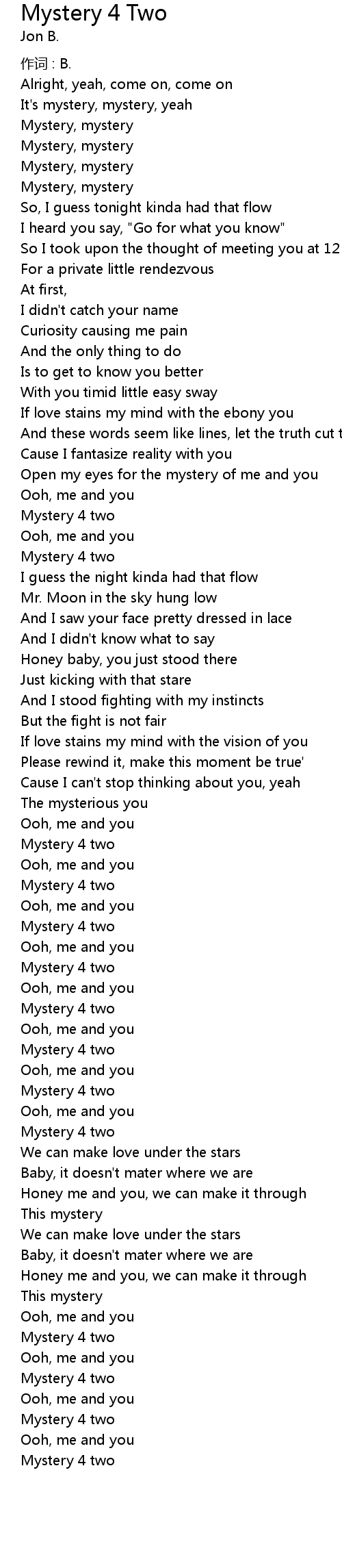 | It's mystery, mystery, yeah | |
