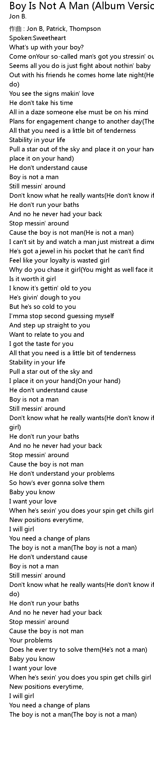 | Cause the boy is not man | |