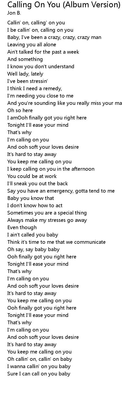 I be callin' on, calling on you |