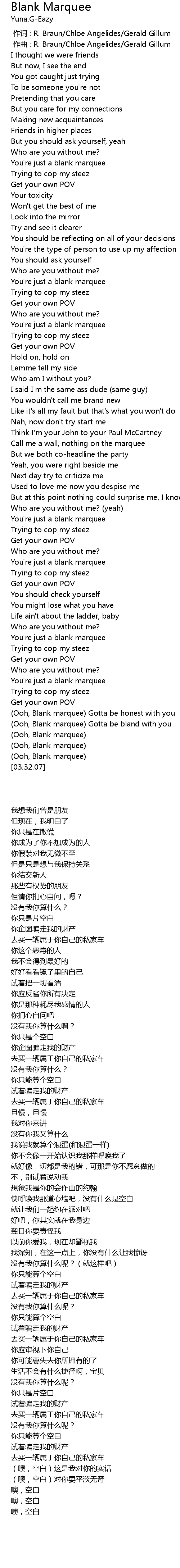 | [03:13.41] | Ooh, Blank marquee Gotta be bland with you |