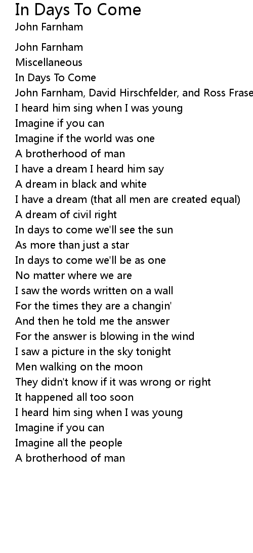 Song In Days To Come
