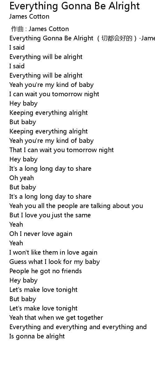 | [00:00.00] | Everything Gonna Be Alright (切都会好的)-James Cotton |