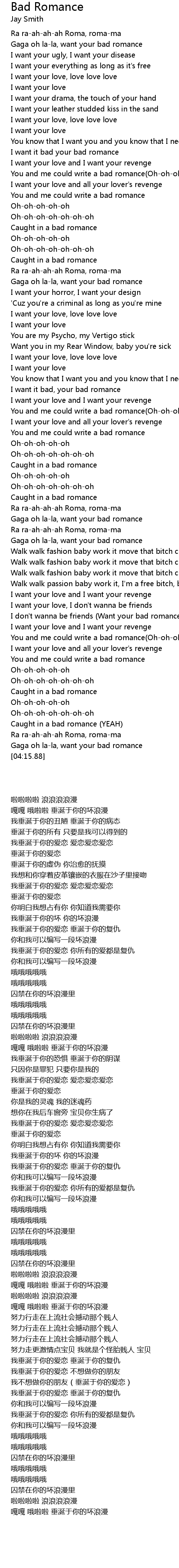 | [04:10.33] | Gaga oh la-la, want your bad romance |