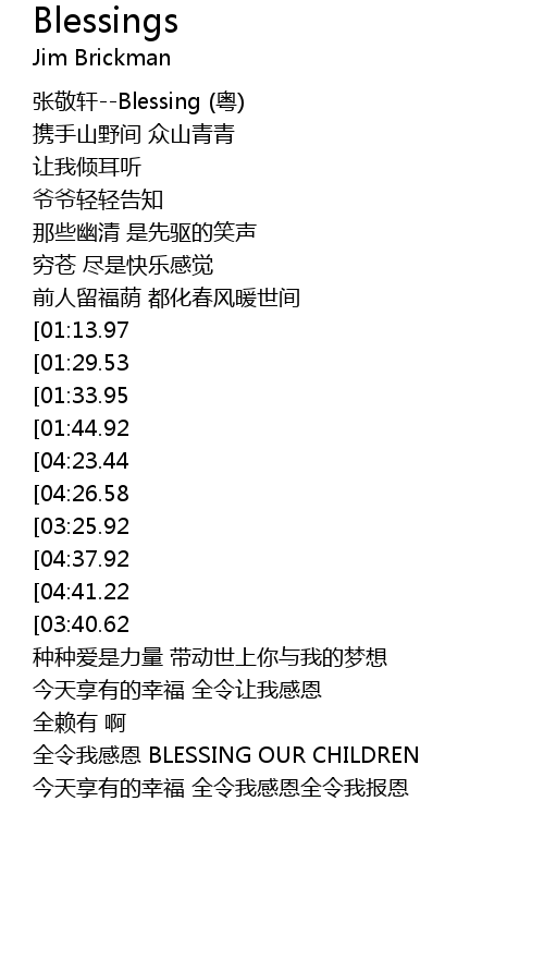 | [04:29.57] | 全令我感恩 BLESSING OUR CHILDREN |