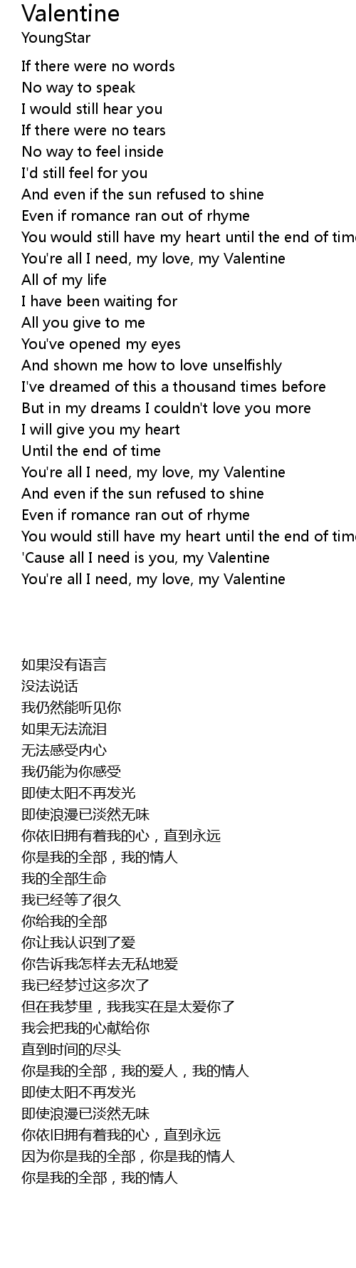 You're all I need, my love, my Valentine |