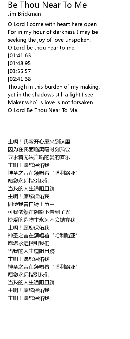 | [02:51.57][02:41.38][02:02.16][00:58.83] | O Lord Be Thou Near To Me |