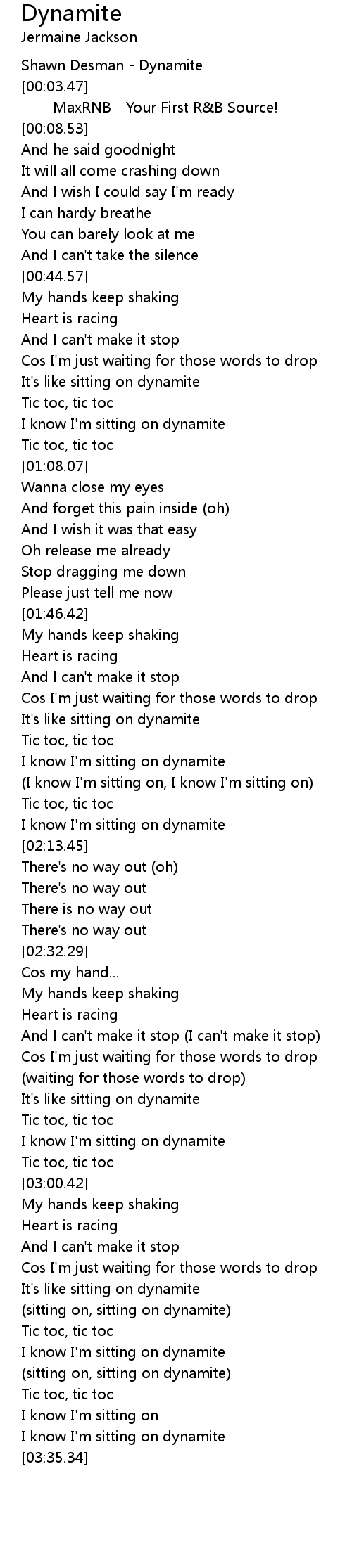 [03:21.34] (sitting on, sitting on dynamite)