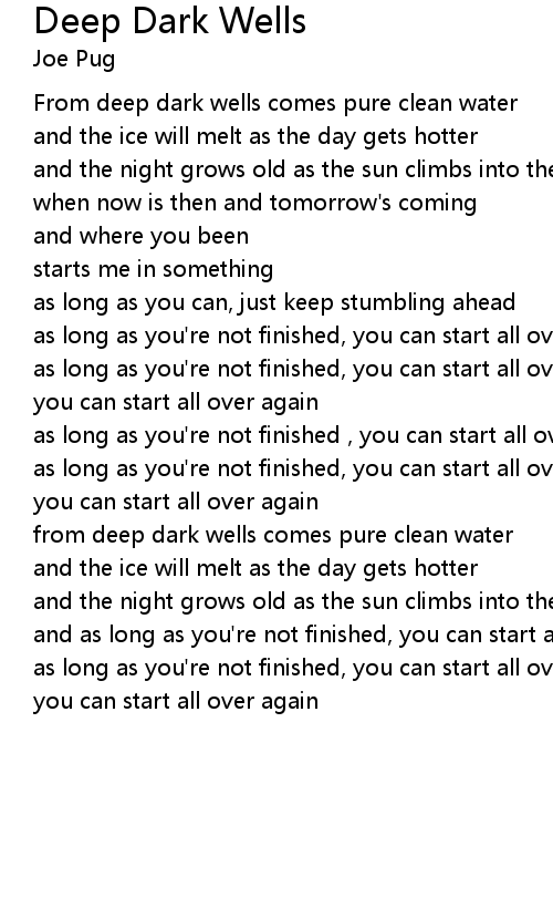 From deep dark wells comes pure clean water |