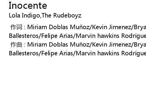 | [00:00.000] | 作词 : Miriam Doblas Muñoz/Kevin Jimenez/Bryan Lezcano/Johnatan Ballesteros/Felipe Arias/Marvin hawkins Rodríguez/George Steeward Forbes James |