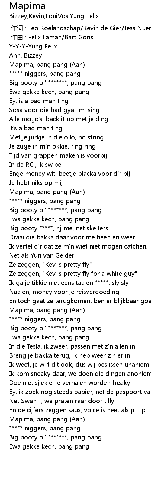 | [01:31.09] | ***** niggers, pang pang |